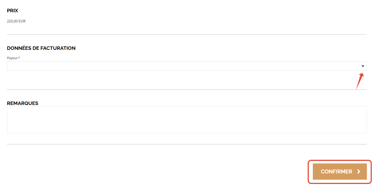 7. Faites défiler vers le bas et choississez, sous « Données de facturation », le payeur correct. Ces informations figureront sur la facture.