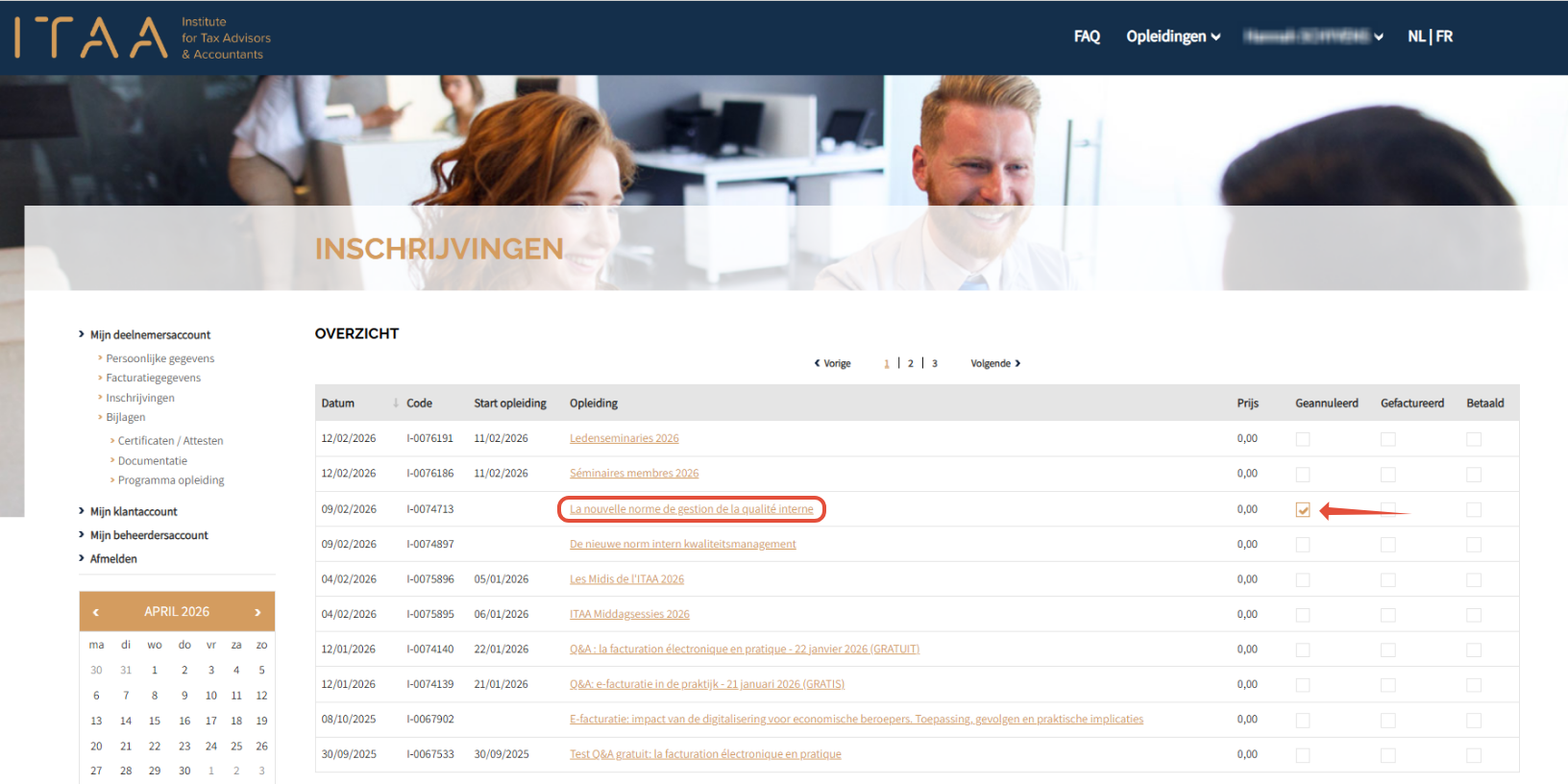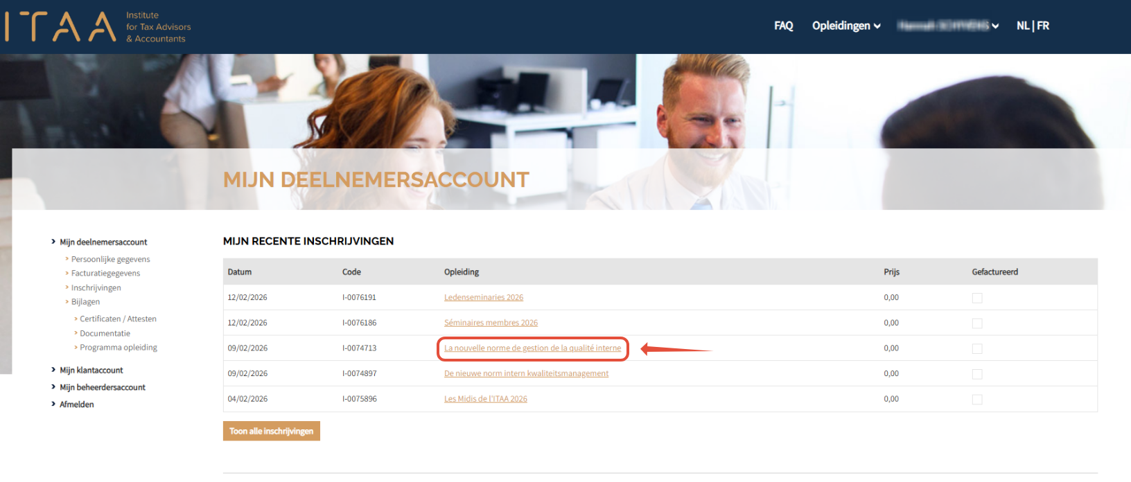 Stap 1: Ga naar uw deelnemersaccount op het ITAA-portaal: https://portal.itaa.be/.